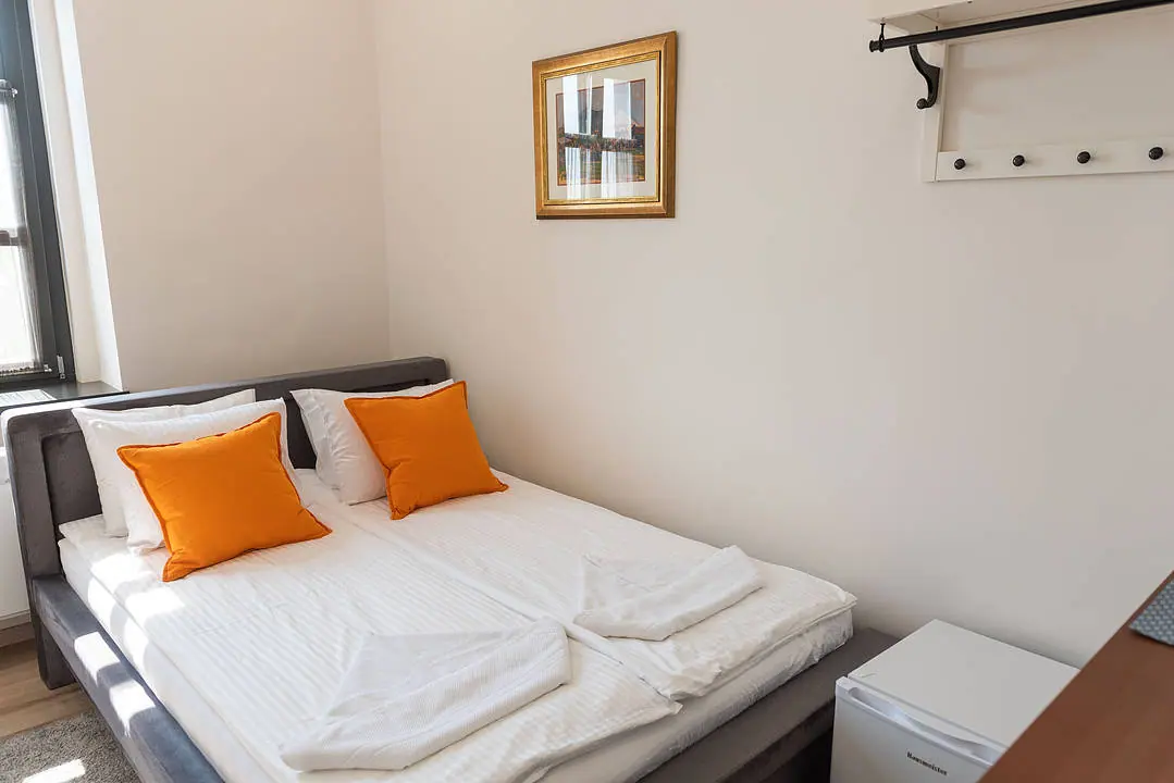 2 fős, 1 kétágyas szoba, saját zuhanyzós fürdőszobával, hajszárítóval, mini hűtővel,vízforralóval
